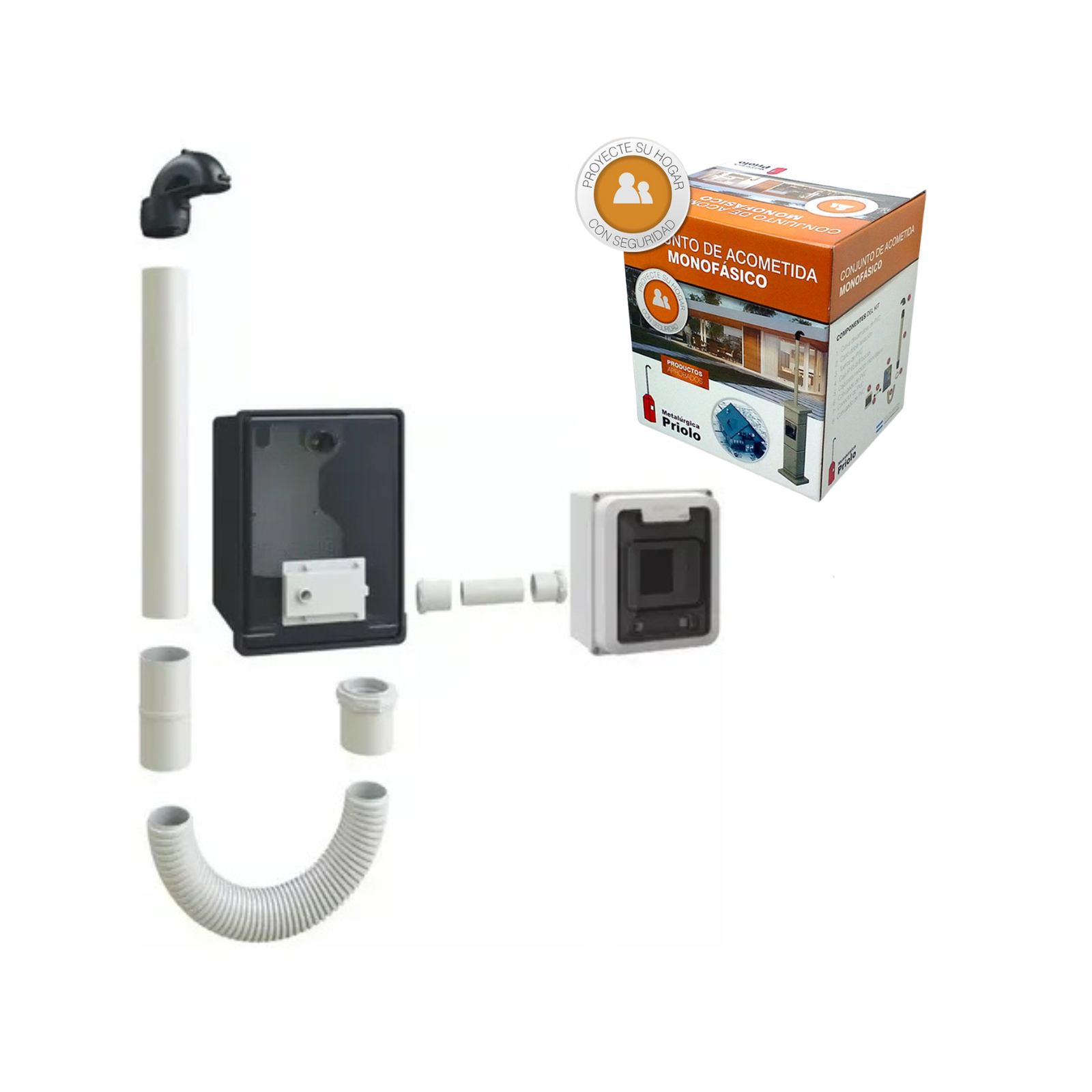 Producto Kit Pilar Monofasico Edesur Edenor Eba Pipeta Unión caño pilar a caño corrugado. Caño corrugado. Conector caño corrugado. Gabinete medidor monofásico con reseteo. Conector Tubelectric Ø25 x 15 cm. Caja para termomagnética